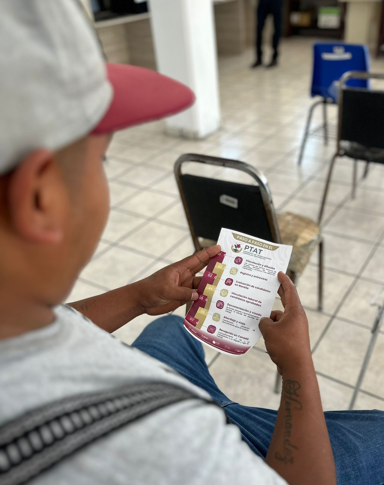 Durante la jornada, las y los aspirantes participaron en entrevistas de selección y recibieron información sobre los requisitos, condiciones laborales y procesos de contratación del PTAT, programa que permite acceder a empleos temporales en Canadá con respeto a los derechos laborales, acompañamiento institucional permanente y certeza jurídica.